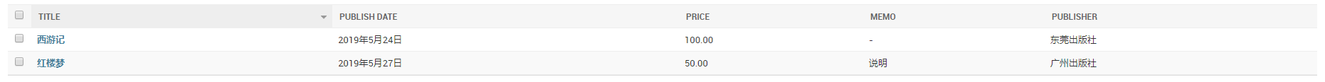 list_display = ['title', 'publish_date', 'price', 'memo', 'publisher']