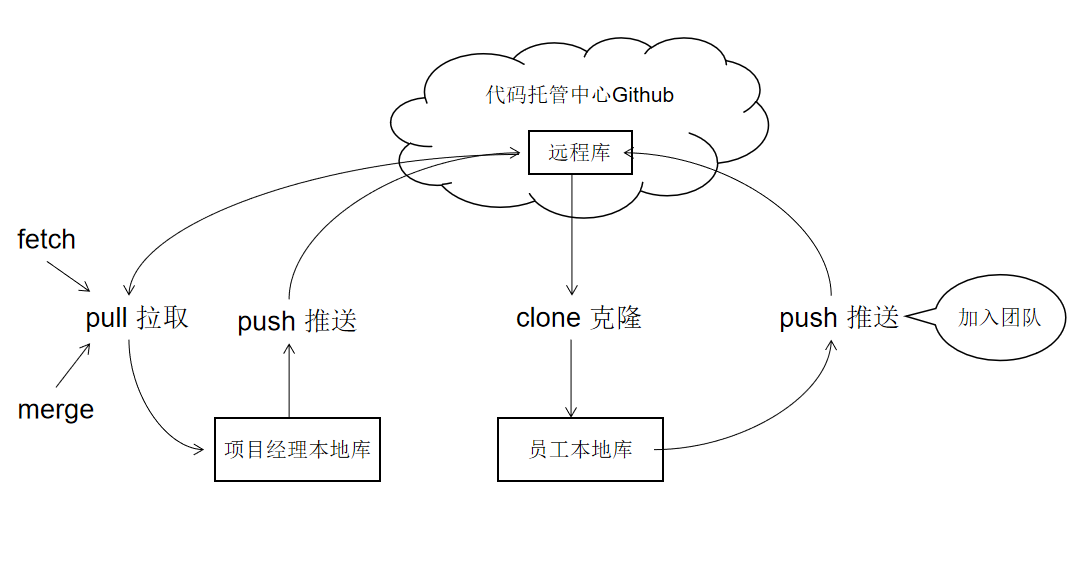 - 推送前提: 员工的账号要在项目经理远程库或组织(并且,员工在组织的权限为可拉取和推送)中
